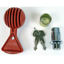 Urzadzenie zabezpieczajace przed kradzieza, w komplecie z jednakowym kluczem. Zablokuj